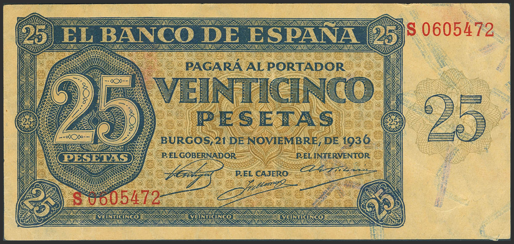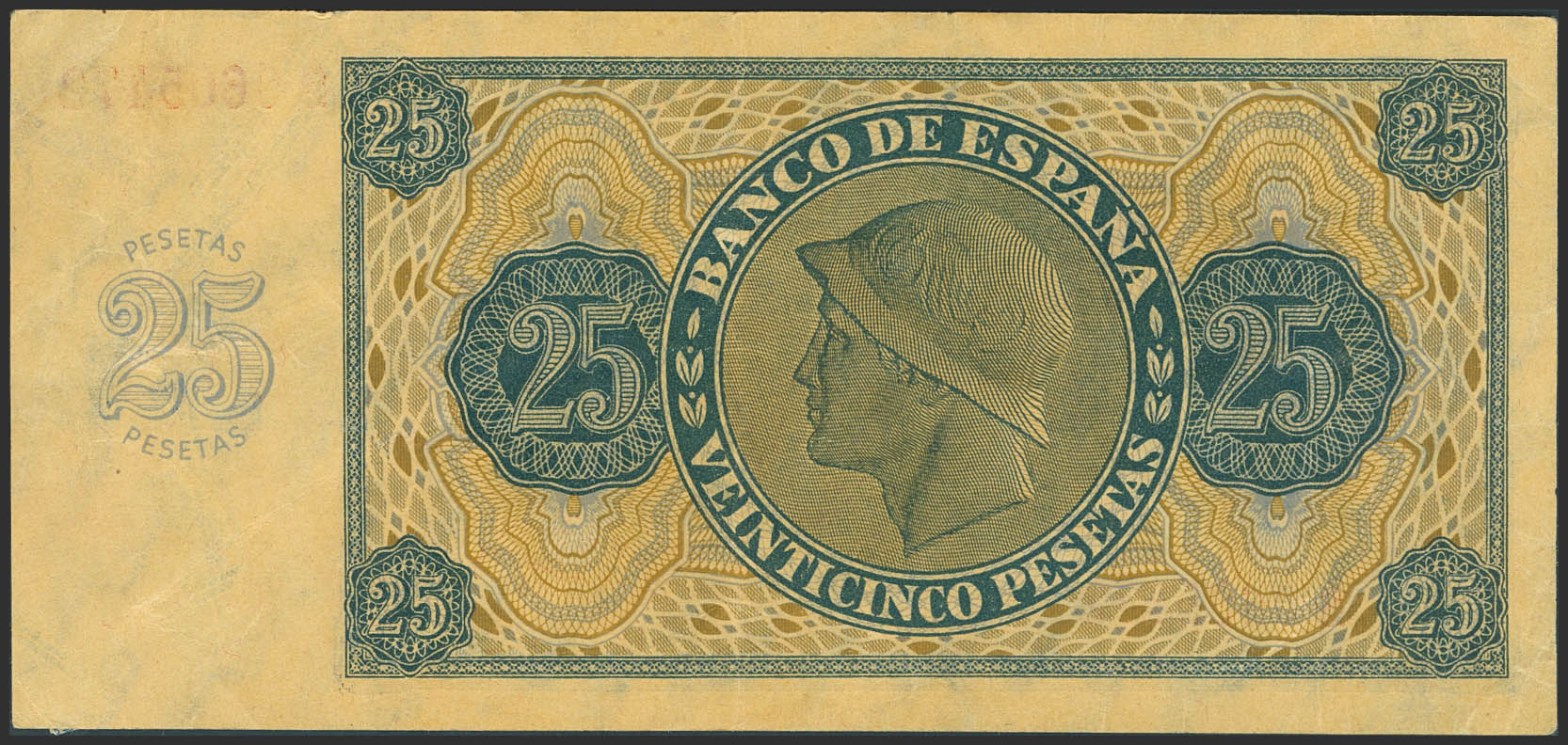 25 Pesetas. November 21, 1936. Series S, last series issued. (Edifil 2023: 419b). Extremely Fine-.