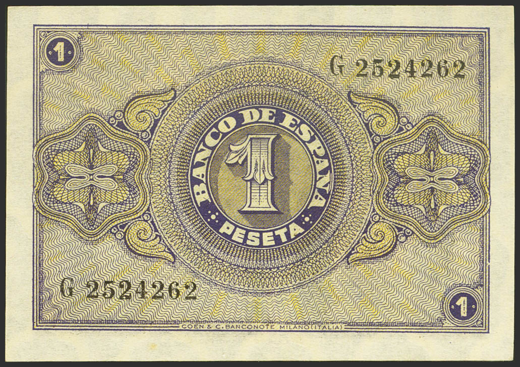 English 1 Peseta. April 30, 1938. Series G. (Edifil 2021: 428a). Original size. Uncirculated.