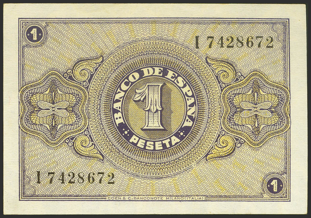 1 Peseta. April 30, 1938. Series I. (Edifil 2023: 428a). Original size. Uncirculated.