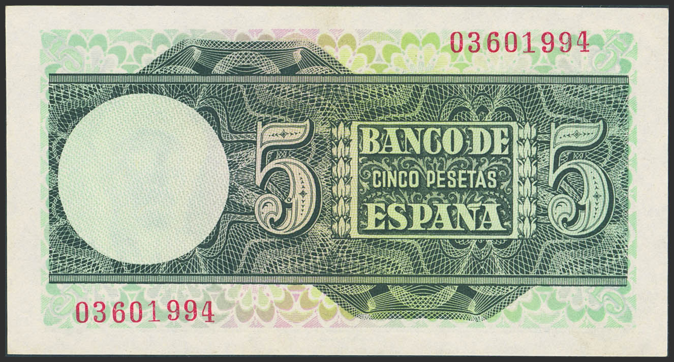 English 5 Pesetas. March 5, 1948. No series. (Edifil 2023: 455). Original size. Unused.