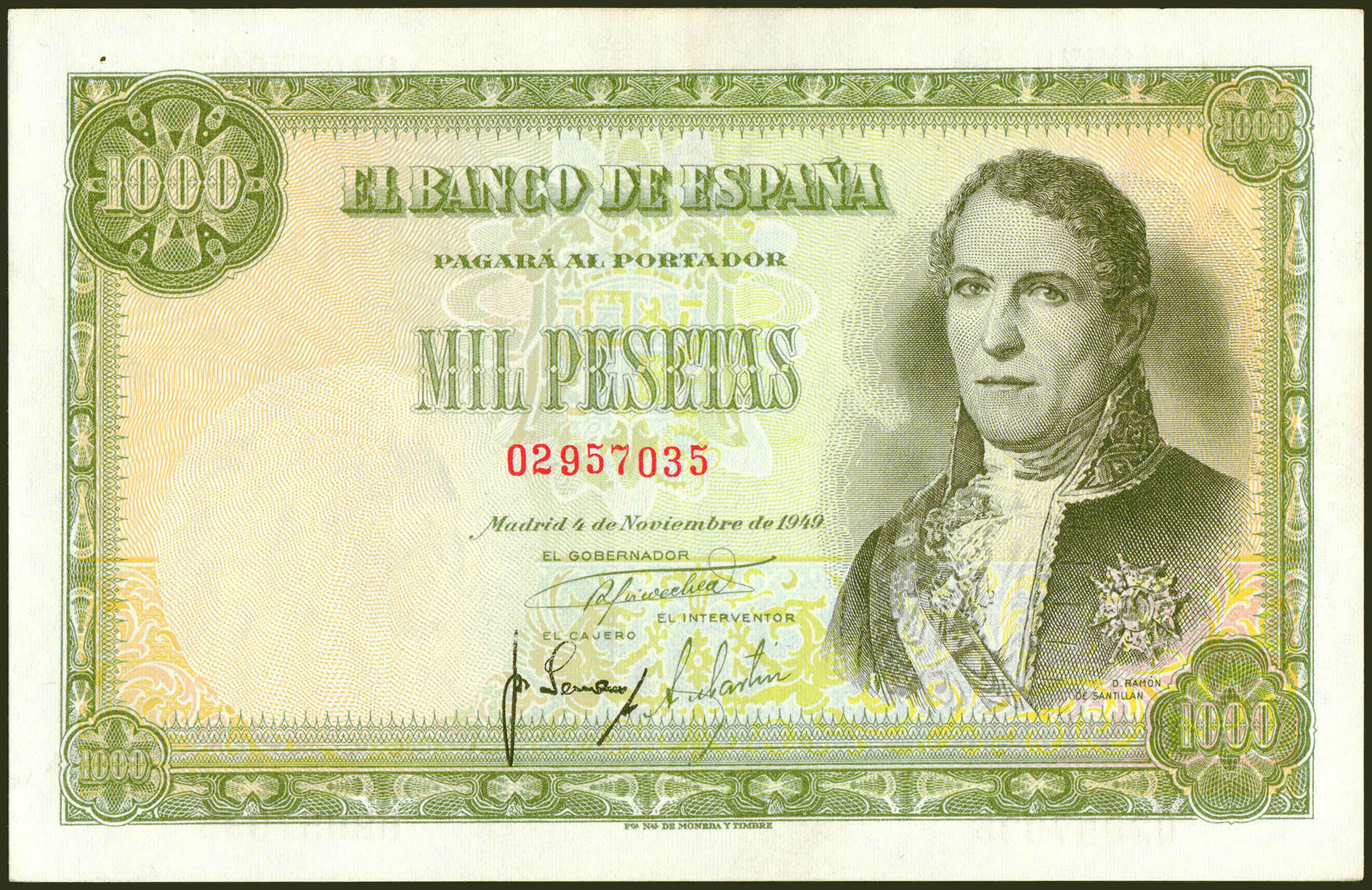 1000 Pesetas. November 4, 1949. No series. (Edifil 2021: 458). Retains much of its original finish. Extremely Fine.