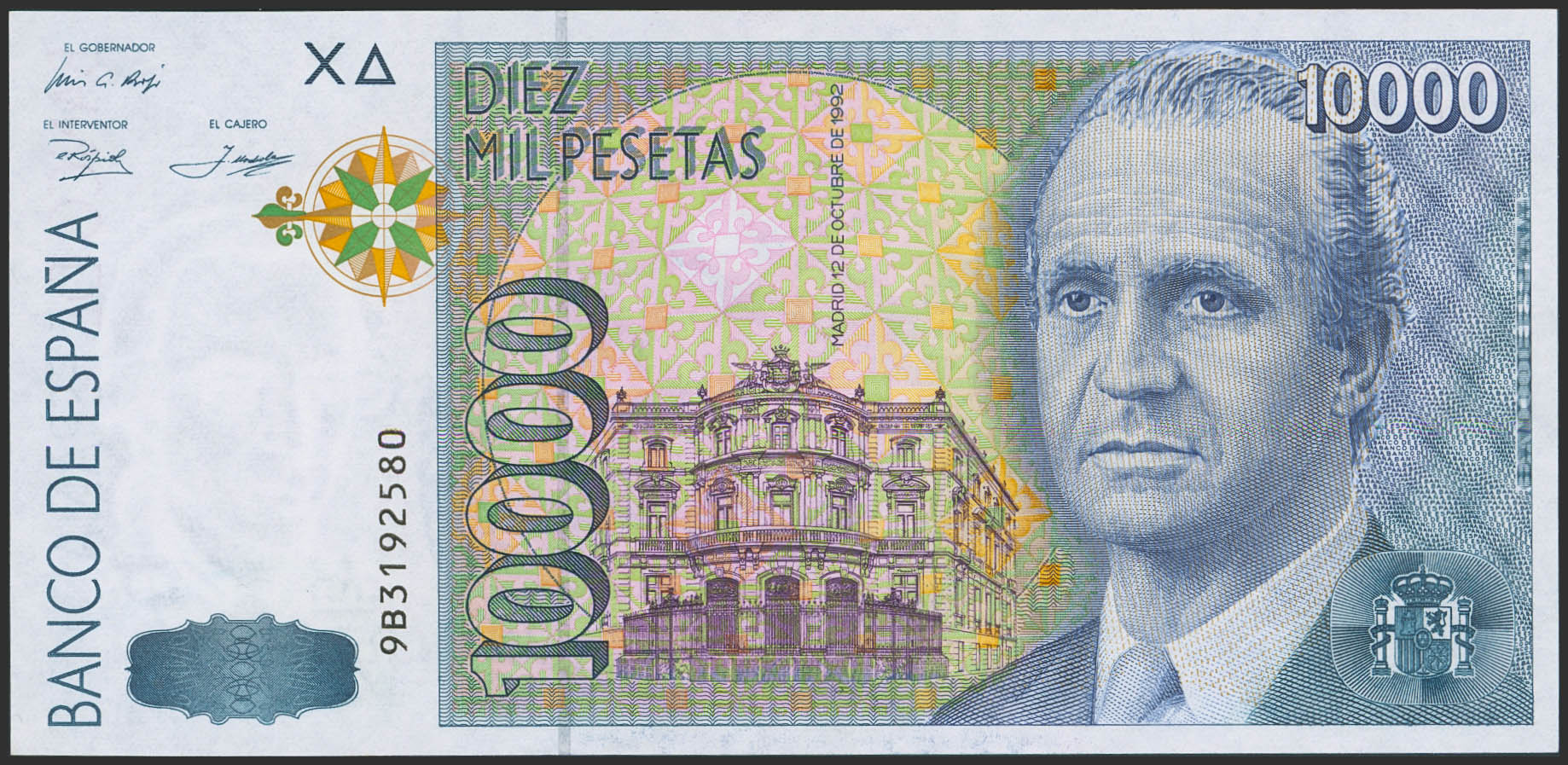 10,000 Pesetas. October 12, 1992. Special Series 9B. (Edifil 2023: 485c). Rare. Unused.
