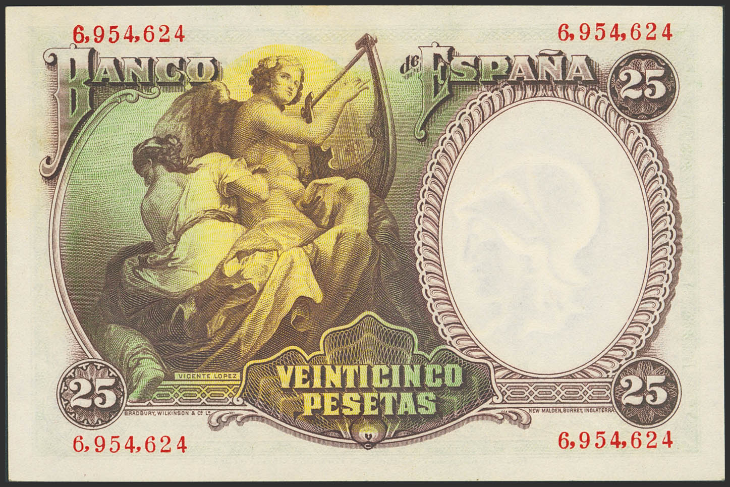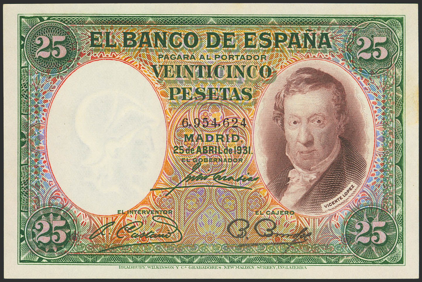 25 Pesetas. April 25, 1931. No series. (Edifil 2023: 358). Retains all original finish. Uncirculated-.