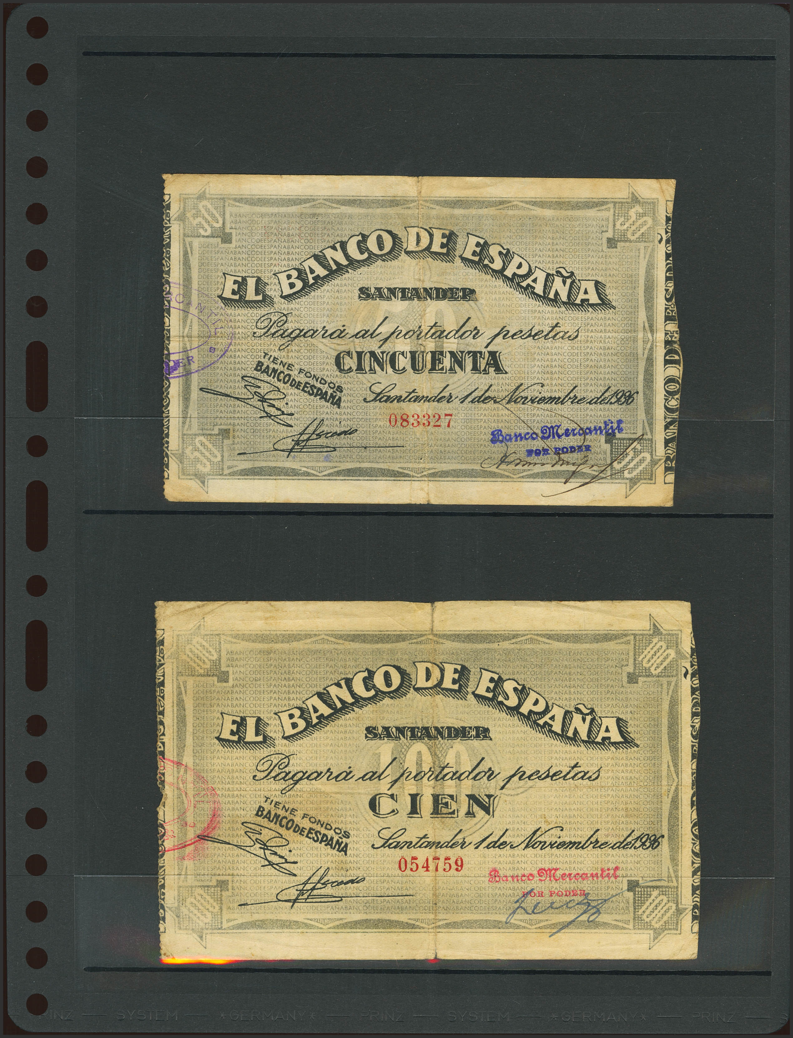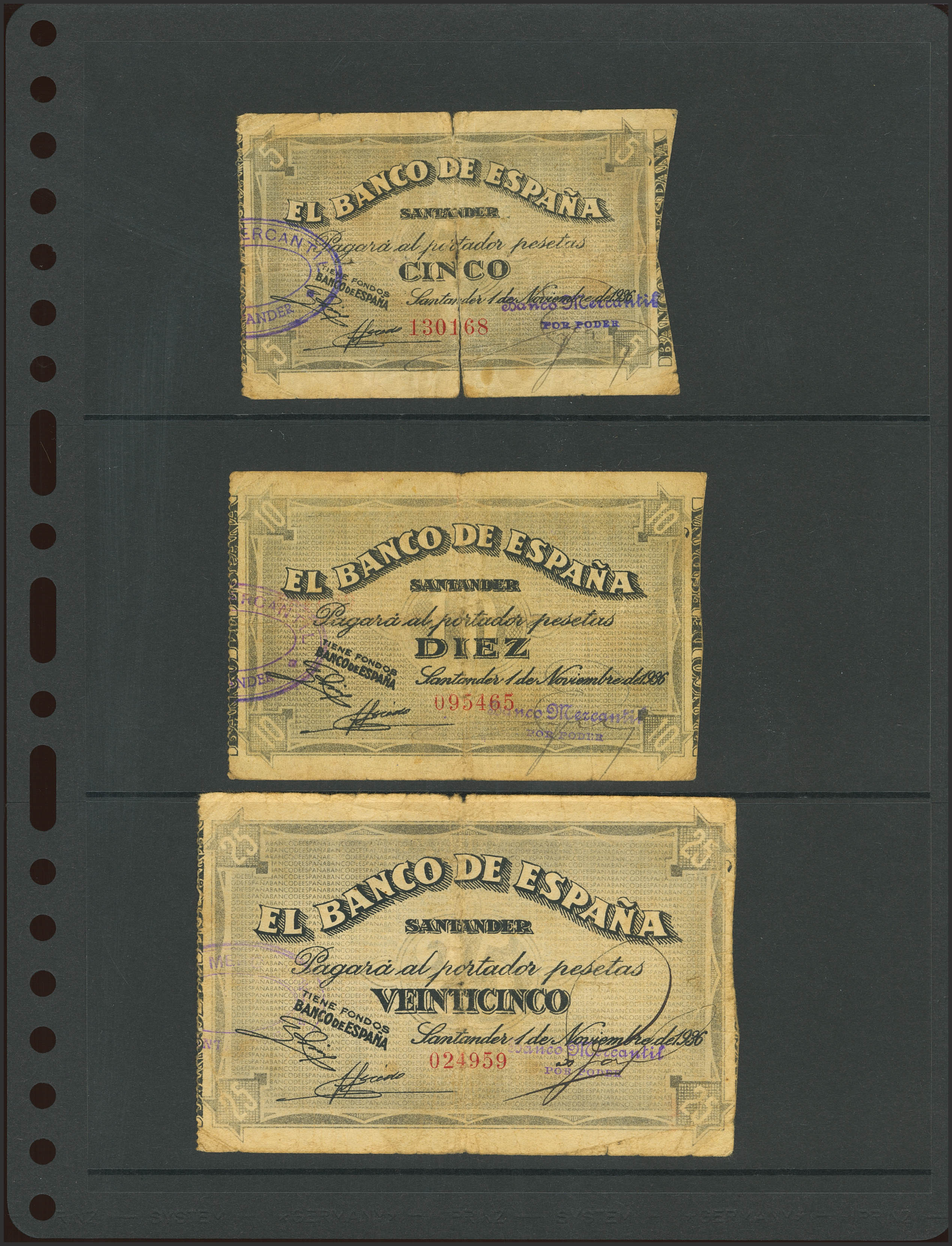 Series of 5 banknotes from the Banco de España branch of the Santander banknote ...