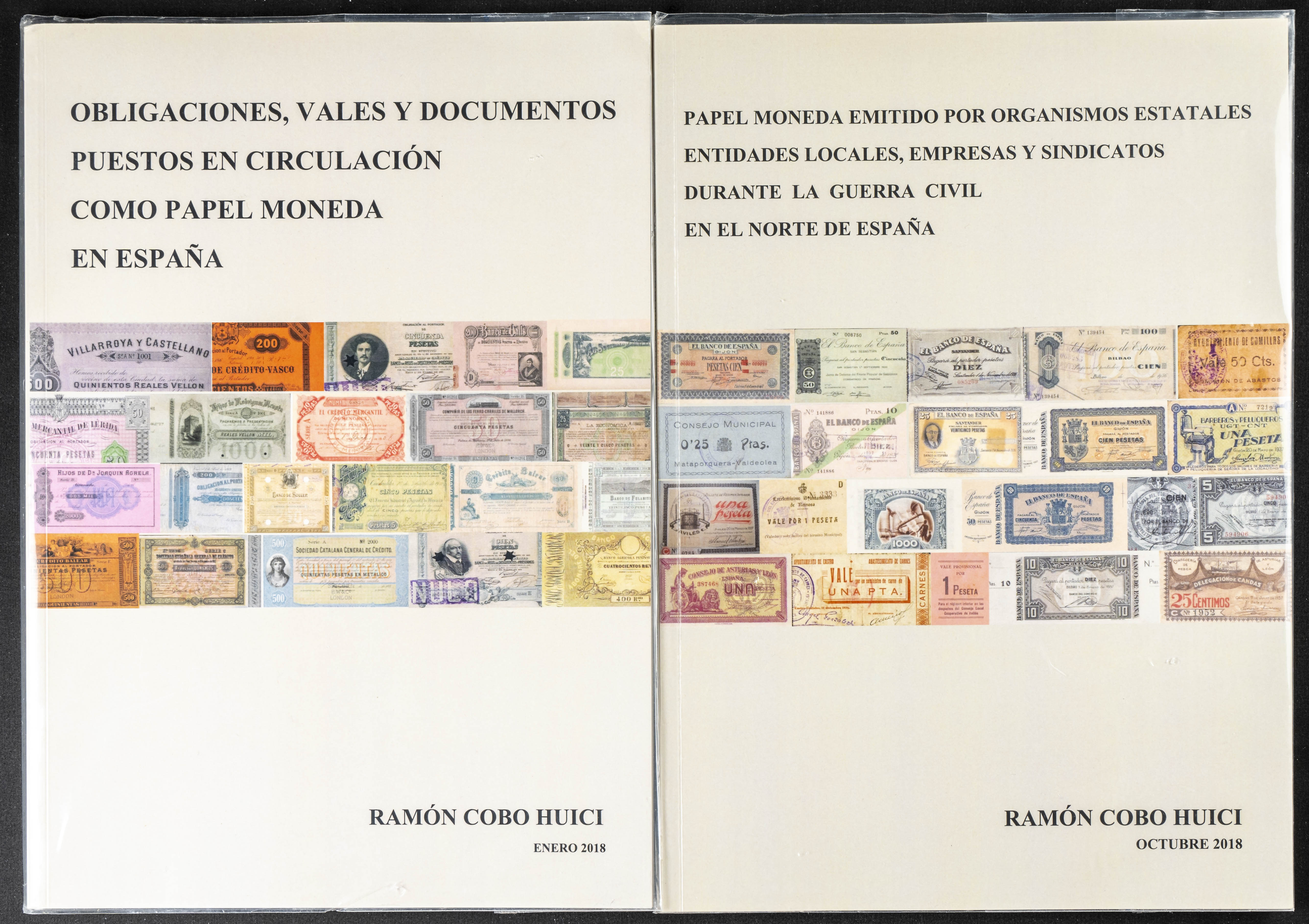 Two works: Bonds, Notes, and Documents Used as Paper Money in Spain and Paper Money Issued by State Agencies, Local Authorities, Companies, and Trade Unions During the Civil War in Northern Spain. Ramón Cobo Huici, 2018.