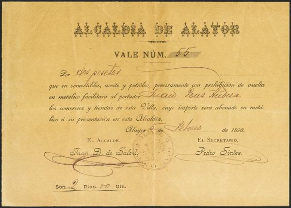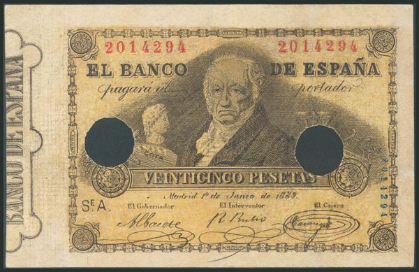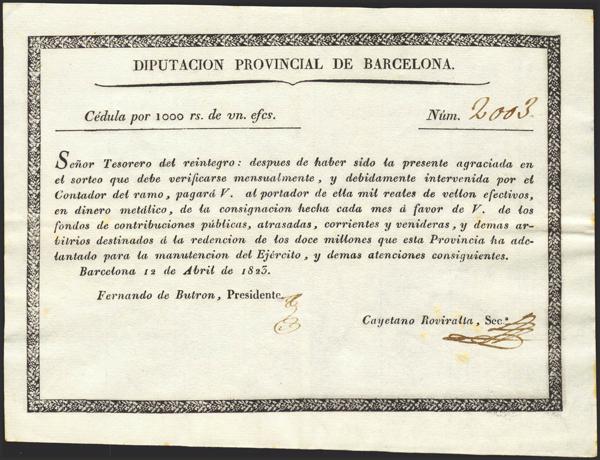 To better understand the contextualization of this banknote, we recommend the work "Obligations, vouchers and documents put into circulation as paper money in Spain", by Don Ramón Cobo Huici.