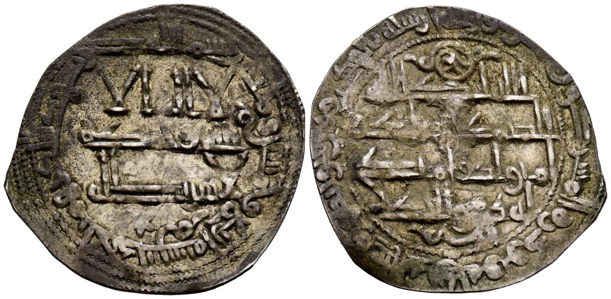 English INDEPENDENT EMIRATE OF CÓRDOBA, Muhammad I. Dirham. (Ar. 2.11g/25mm). 254H. al-Andalus / الاندلس. (Vives 268; R. Frochoso 2009, combination of ornaments not included). Very Fine. The piece presents a very fine horizontal crack between the 2nd and 3rd lines of II.A.