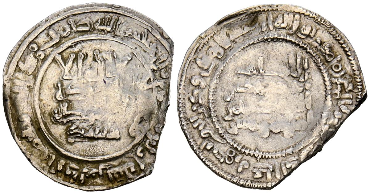 CALIFATO DE CORDOBA, Abd al-Rahman III. Dirham. (Ar. 2,56g/24mm). 324H. al-Ándalus. (Vives 385; Frochoso 324.6). Citando a Ša'īd / سعيد en IA. Unidad de la fecha visible, recorte de un 10%. MBC-. Escasa.