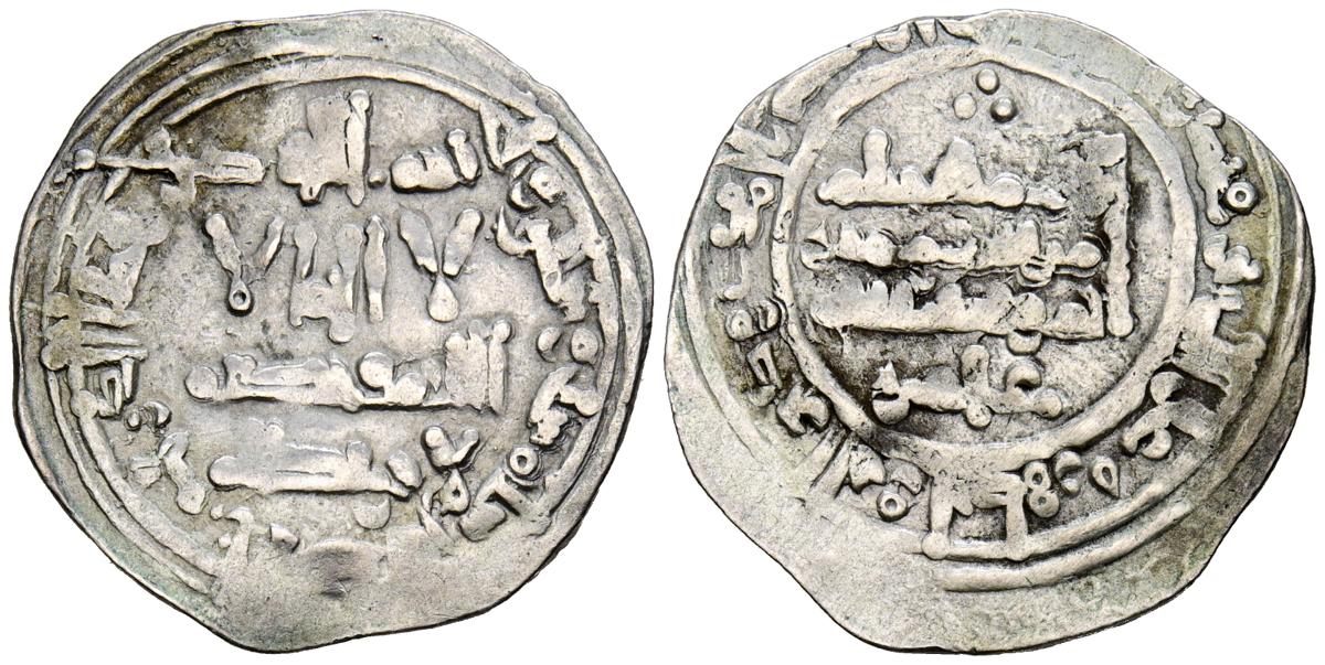 CALIFATO DE CÓRDOBA, Hisham II. Dirham. (Ar. 2,86g/24mm). 366H. al-Ándalus / الاندلس. (Vives 498; Frochoso 366.14). Citando a ‘Āmir / عامر en IIA. MBC.