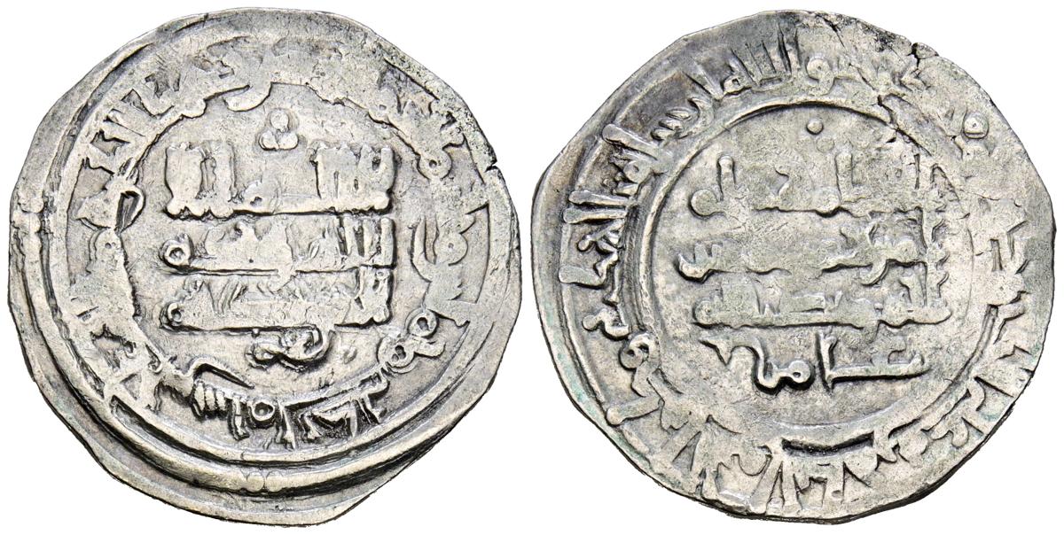 CALIFATO DE CÓRDOBA, Hisham II. Dirham. (Ar. 3,68g/24mm). 381H. al-Ándalus / الاندلس. (Vives 514; Frochoso 381.36). Citando a ‘Āmir / عامر en IIA. MBC-.