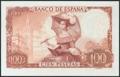 100 pesetas. November 19, 1965. Series H and capicúa numbering H4553554. (Edifil 2017: 470a). Uncirculated.