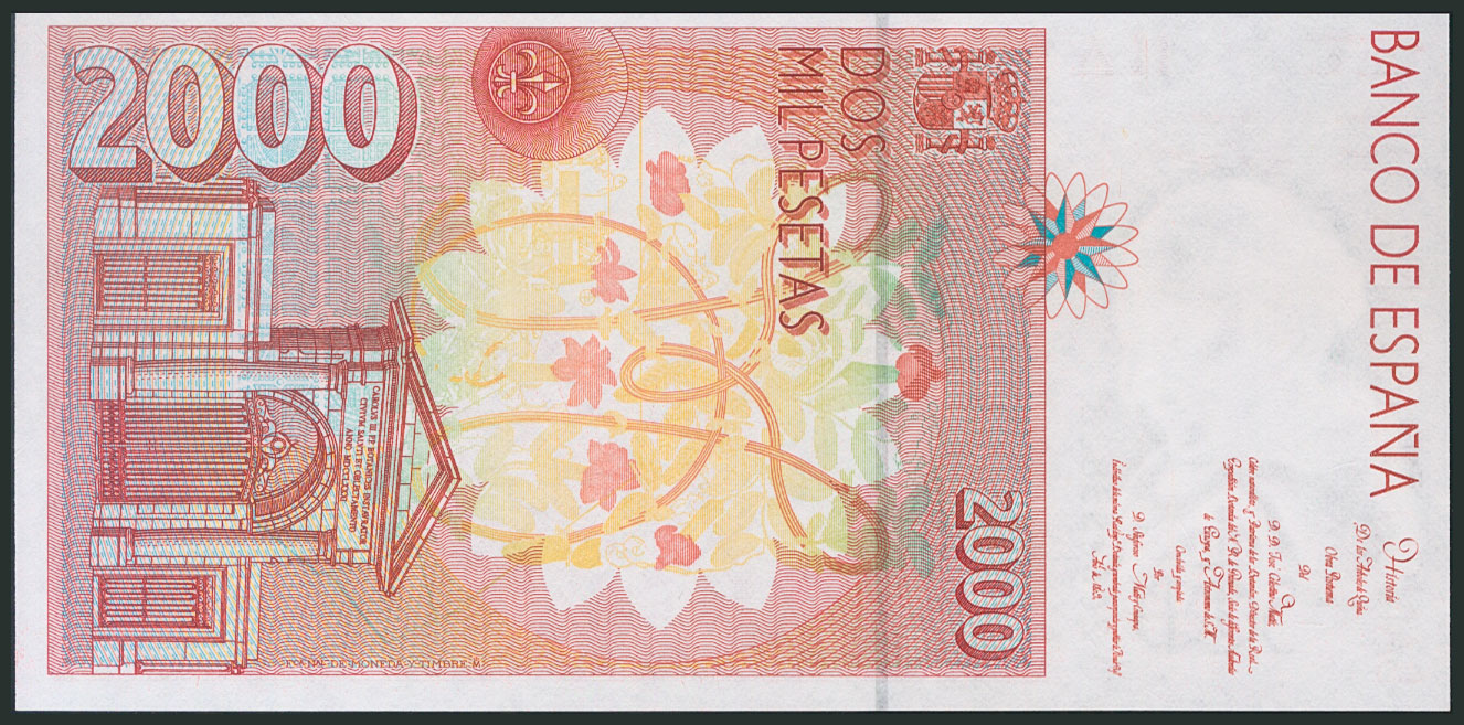 2000 Pesetas. April 24, 1992. Series 2G and palindromic numbering. (Edifil 2017: 482Aa). Uncirculated.
