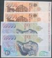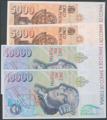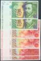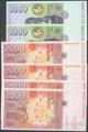 Complete series of 5 banknotes from the 1992 issue (including the 2000 Pesetas from 1995 with series 1S). Correlative pair. Without series and all of them with the same numbering. (Edifil 2017: 482/85, 482A). Very rare set. Uncirculated.
