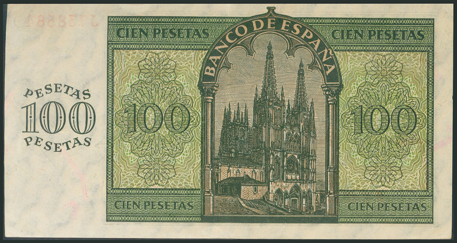 100 pesetas. November 21, 1936. Series J. (Edifil 2017: 421a). Retains much of the original sizing. Extremely Fine.