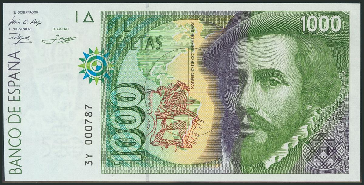 English 1000 Pesetas. October 12, 1992. Type II. Series 3Y and low numbering and imperfect capicúa. (Edifil 2017: 483b). Uncirculated.