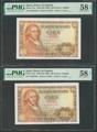 English 100 pesetas. May 2, 1948. Correlative couple. Series C. (Edifil 2017: 456a). Original sizing. Good Extremely Fine. PMG58EPQ packages, both.