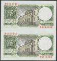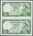 5 pesetas. July 22, 1954. Correlative couple. Series M. (Edifil 2017: 466a). Original sizing. Uncirculated.