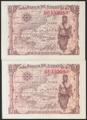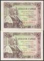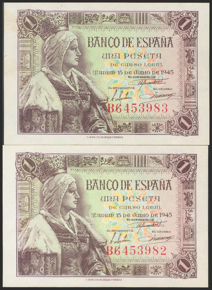 English 1 Peseta. June 15, 1945. Correlative couple. Series B. (Edifil 2017: 448a). Almost Uncirculated.