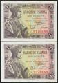 English 1 Peseta. May 21, 1943. Correlative couple. No serie. (Edifil 2017: 447). It retains all its original sizing, a ticket a minimum point. Uncirculated/ Almost Uncirculated.