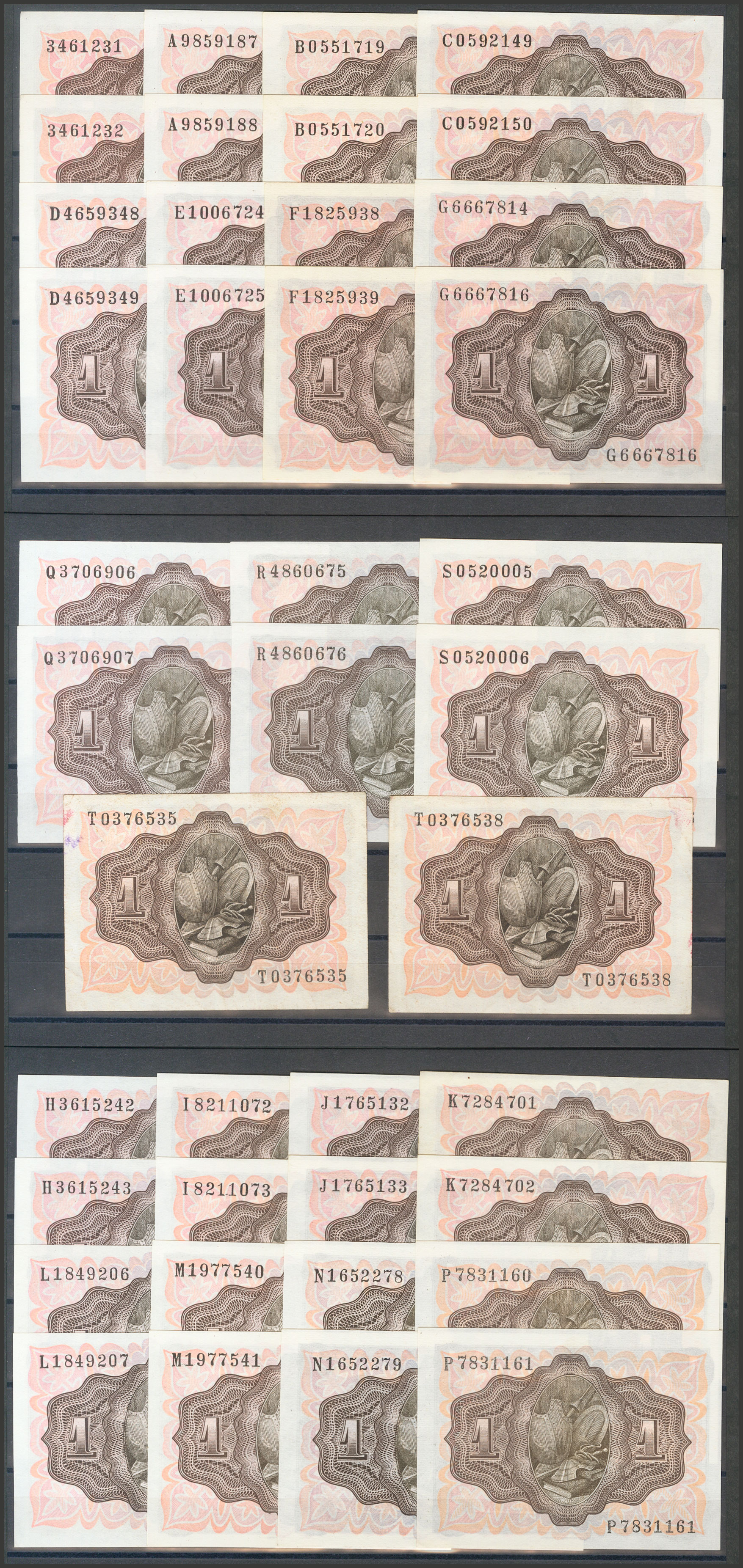 Beautiful and interesting set of 20 pairs of correlative banknotes (except the series G and T which are almost correlative) of 1 Peseta issued on November 19, 1951, including all known series and the one without series (A, B, C , D, E, F, G, H, I, J, K, L, M, N, P, Q, R, S and T). Very rare set and in very good condition, all banknotes have their original sizing, except the very rare T-series, which has Good Very Fine conservation. Uncirculated/ Almost Uncirculated.