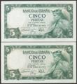 5 pesetas. July 22, 1954. Correlative couple. Series E. (Edifil 2017: 466a). Points. Almost Uncirculated.