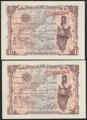 1 Peseta. June 15, 1945. Correlative couple. Series F. (Edifil 2021: 448a). Original sizing. Almost Uncirculated/ Good Extremely Fine.