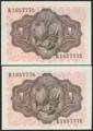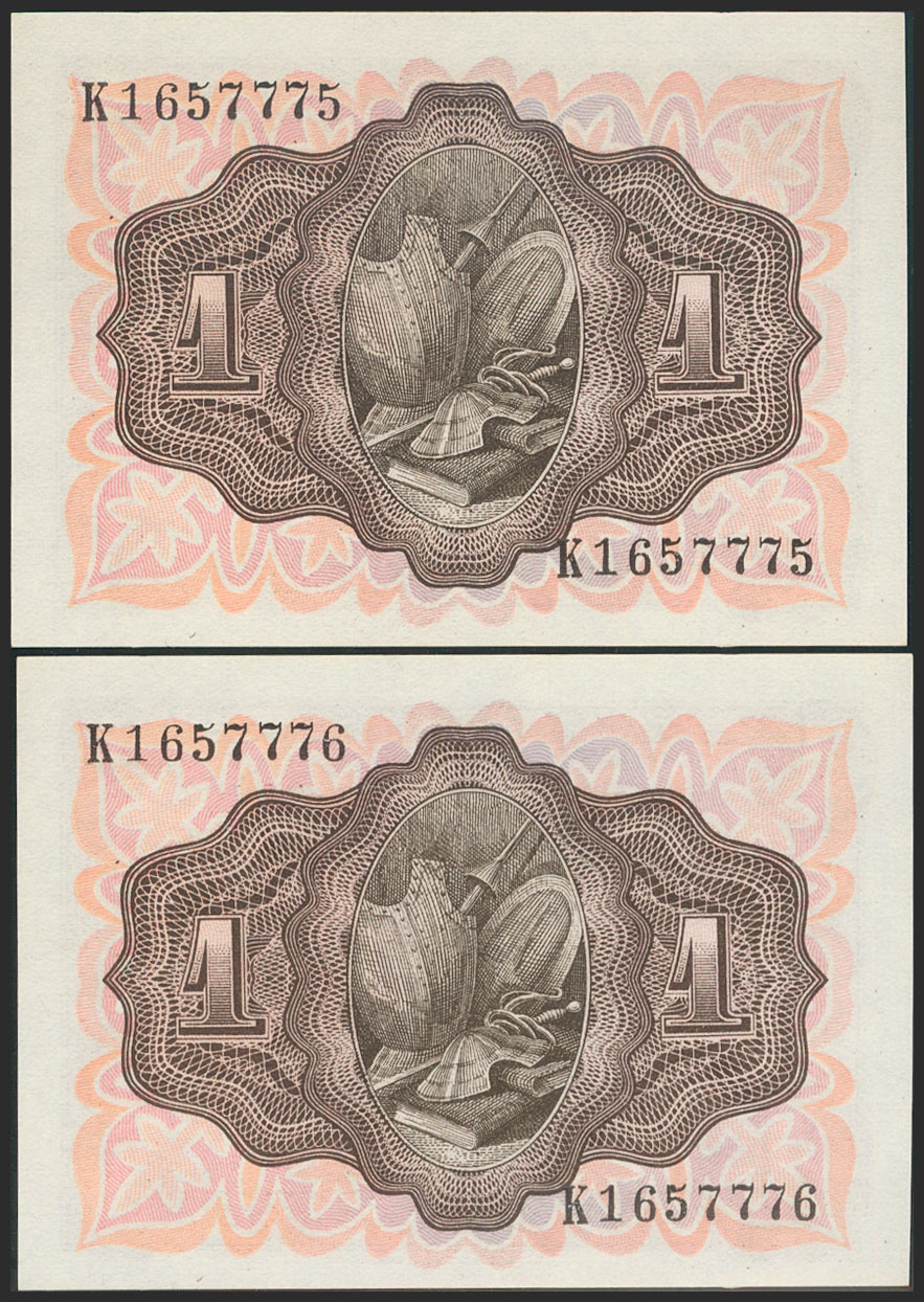 1 Peseta. November 19, 1951. Correlative couple. Series K. (Edifil 2021: 461a). Original sizing. Uncirculated.