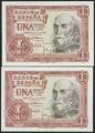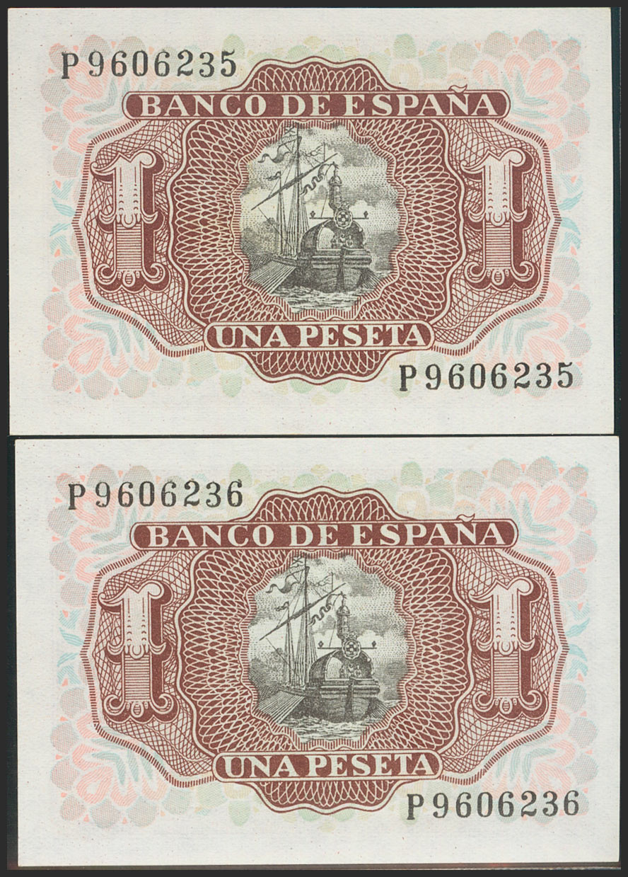 1 Peseta. July 22, 1953. Correlative couple. Series P. (Edifil 2021: 465a). Original sizing. Uncirculated/ Almost Uncirculated.