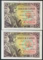 English 1 Peseta. May 21, 1943. Correlative couple. Series J. (Edifil 2021: 447a). Original sizing. Uncirculated.