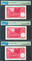 English 50 pesetas. December 31, 1951. Correlative trio. Series C. (Edifil 2021: 462a, Pick: 141a). Very rare in this quality, original sizing. Uncirculated. PMG66EPQ package, all three.
