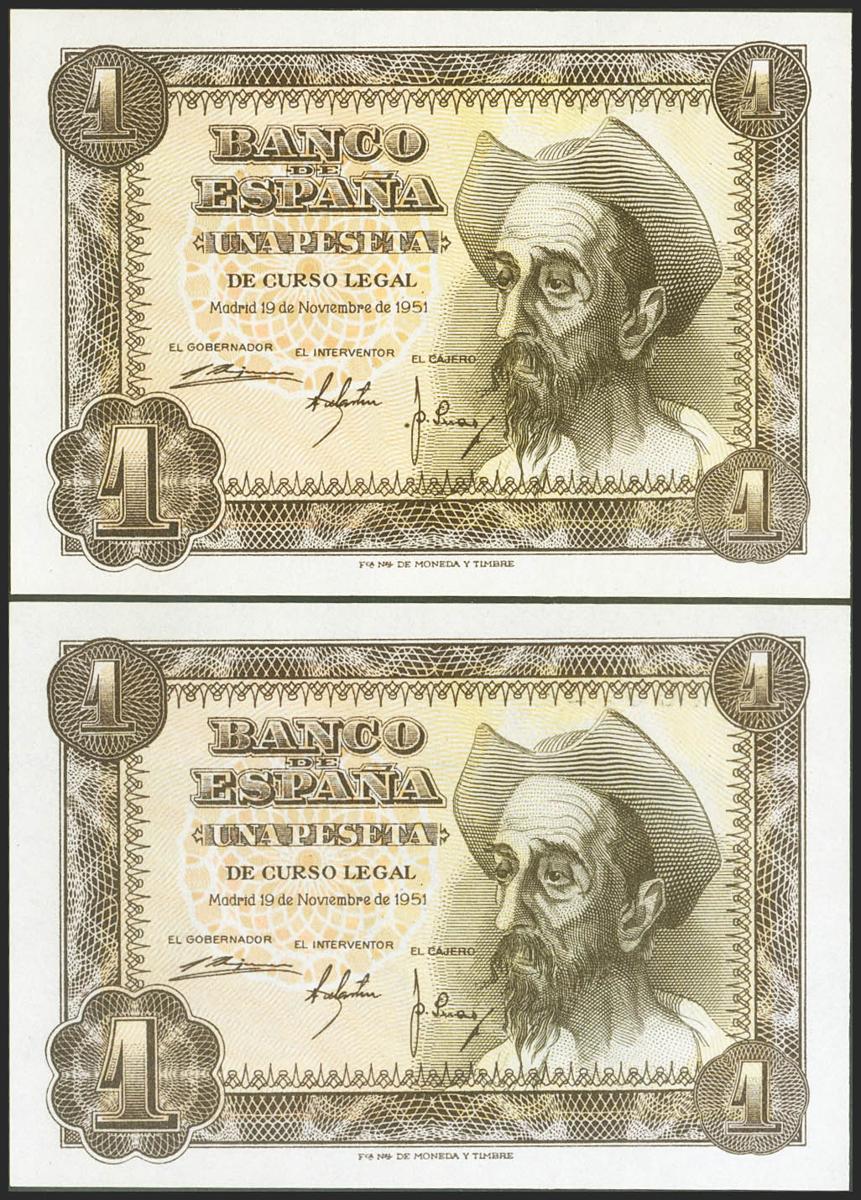 English 1 Peseta. November 19, 1951. Correlative couple. Series Q. (Edifil 2021: 461a). Original sizing. Uncirculated.