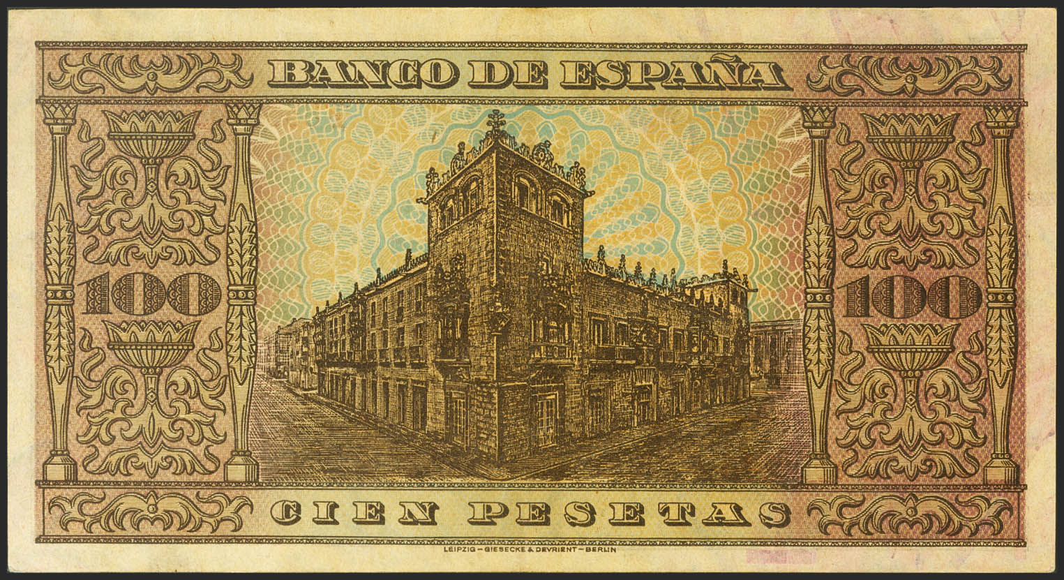 100 pesetas. May 20, 1938. Series F. (Edifil 2021: 432a). It retains much of its original sizing. Good Extremely Fine.
