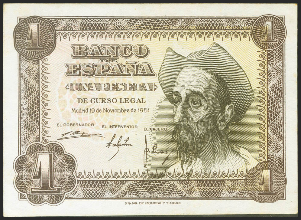 1 Peseta. November 19, 1951. Series Q. (Edifil 2021: 461a). It retains much of its original sizing. Extremely Fine.
