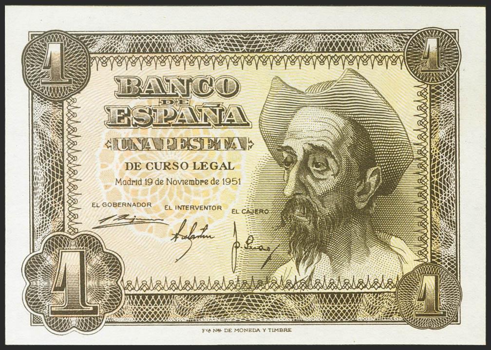 English 1 Peseta. November 19, 1951. Series R. (Edifil 2021: 461a). Original sizing. Uncirculated.