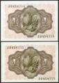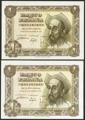 English 1 Peseta. November 19, 1951. Correlative pair, series J. (Edifil 2021: 461a). Original sizing. Uncirculated.