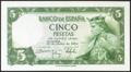 5 pesetas. July 22, 1954. Series R. (Edifil 2021: 466a). Original sizing. Almost Uncirculated.