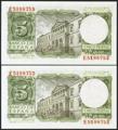 5 pesetas. July 22, 1954. Correlative couple. Series E. (Edifil 2021: 466a). Original sizing. Uncirculated.