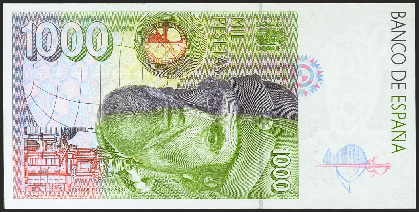 1000 pesetas. October 12, 1992. Series 5Y and palindrome numbering. (Edifil 2021: 483b). Uncirculated.