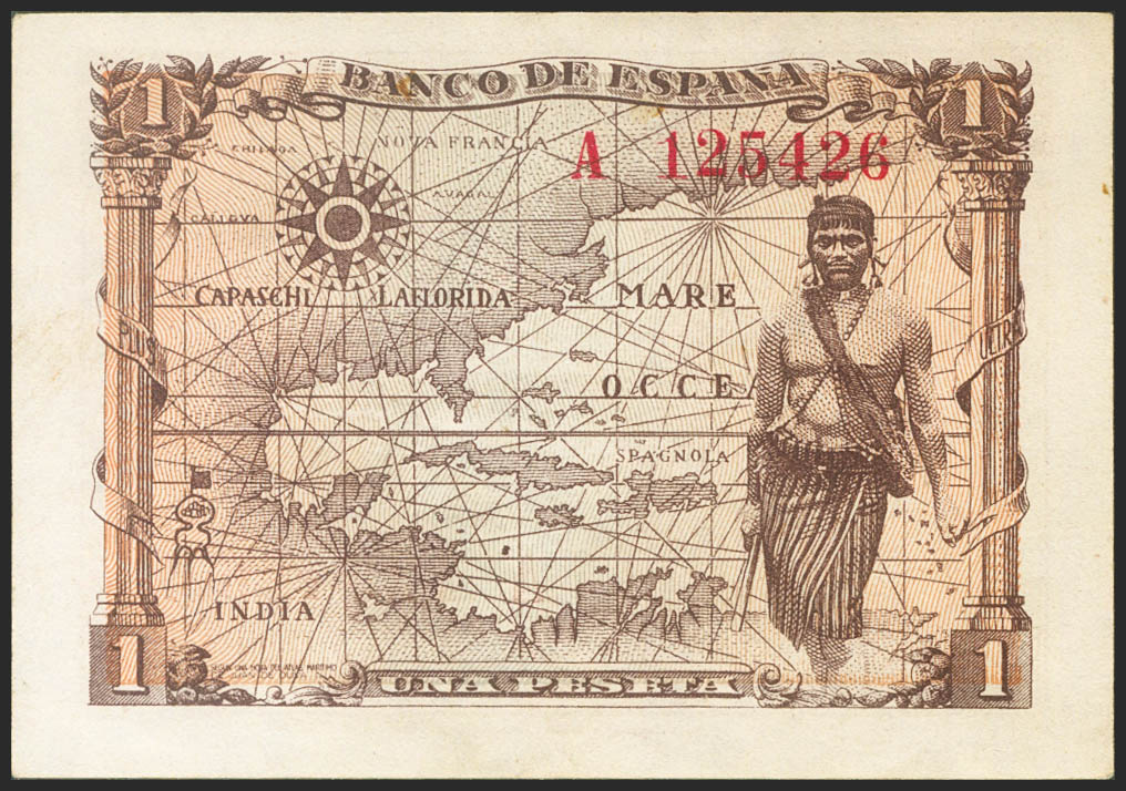 1 peseta. June 15, 1945. Series A. (Edifil 2021: 448a). original sizing Almost Uncirculated.