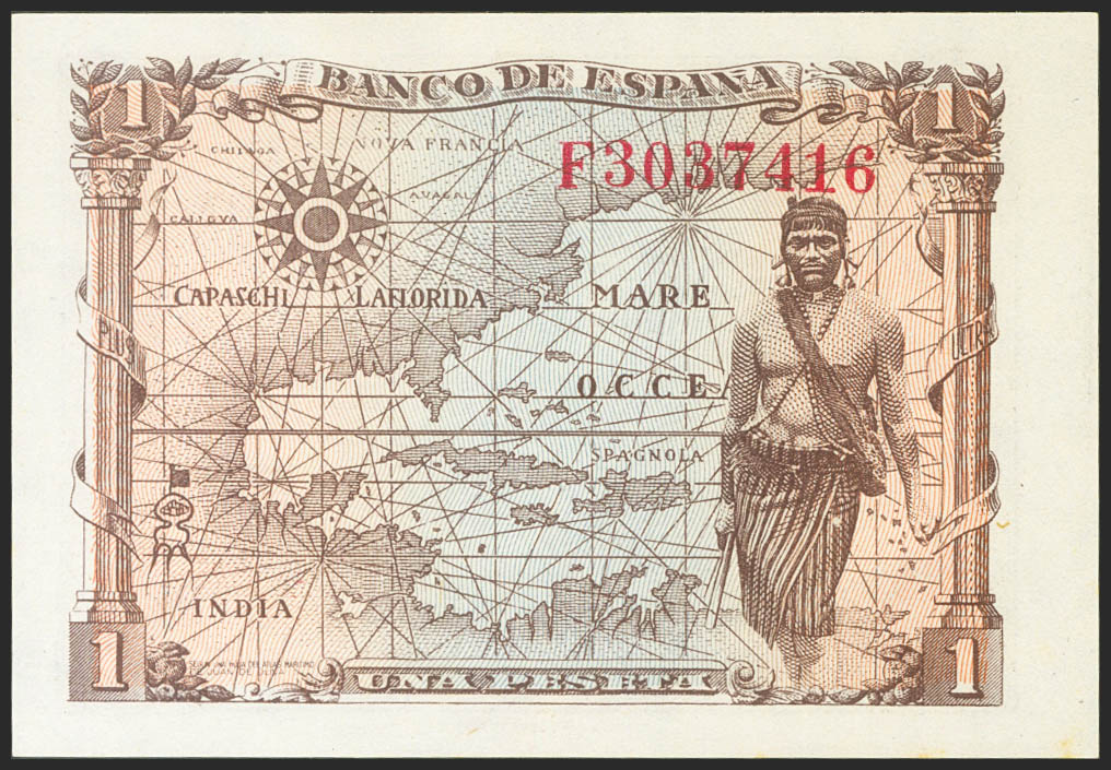 English 1 peseta. June 15, 1945. Series F. (Edifil 2021: 448a). original sizing Uncirculated.