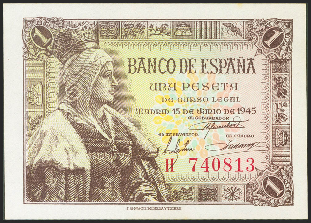 1 peseta. June 15, 1945. Series H. (Edifil 2021: 448a). original sizing Uncirculated.