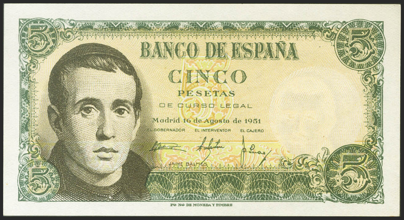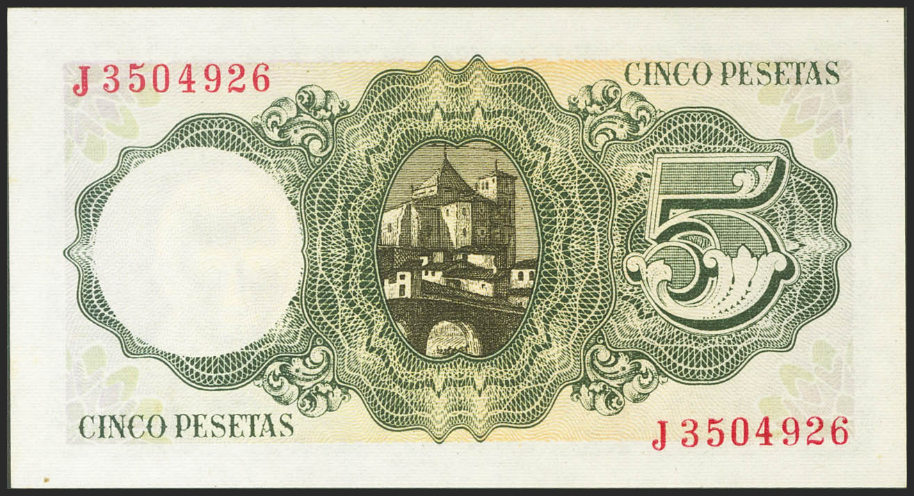 5 pesetas. April 12, 1947. Series J. (Edifil 2021: 459a). original sizing EBC++.