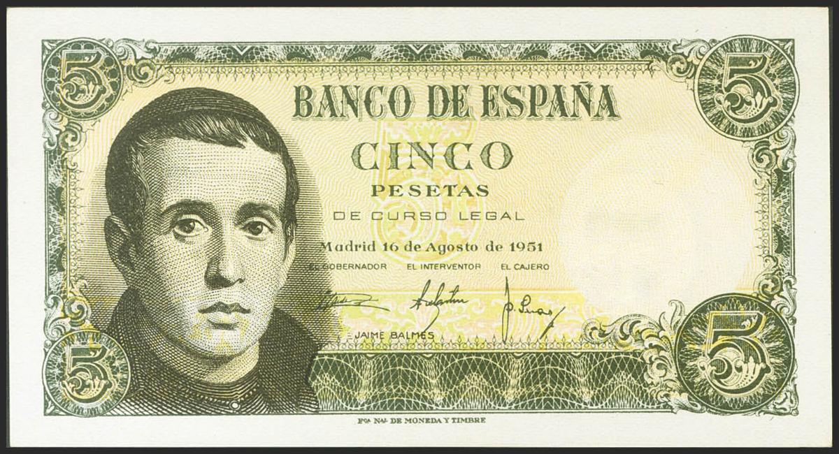 5 pesetas. April 12, 1947. Series 1I. (Edifil 2021: 459a). It retains much of its original size. Good Extremely Fine.