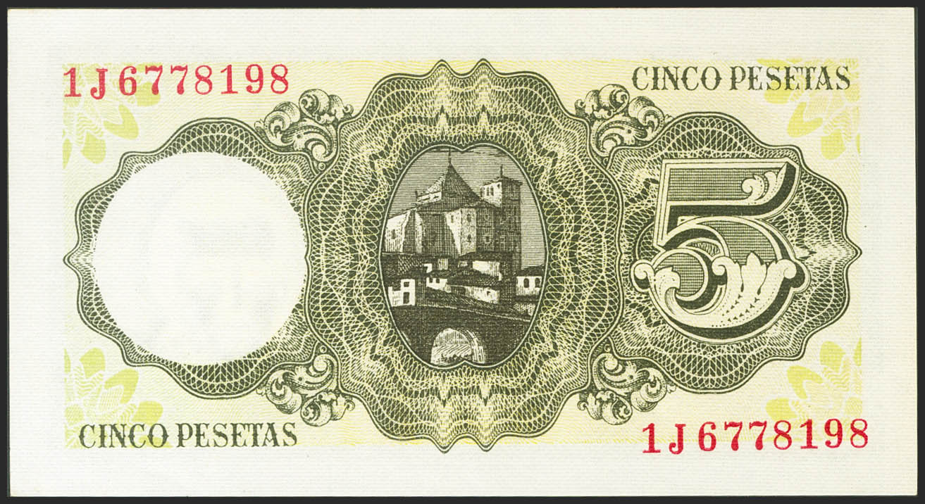 5 pesetas. April 12, 1947. Series 1J. (Edifil 2021: 459a). It retains much of its original size. Good Extremely Fine.