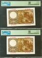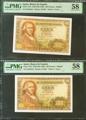 100 pesetas. May 2, 1948. Correlative couple. Series H. (Edifil 2021: 456a, Pick: 137a). EBC++. PMG58 packages, both.