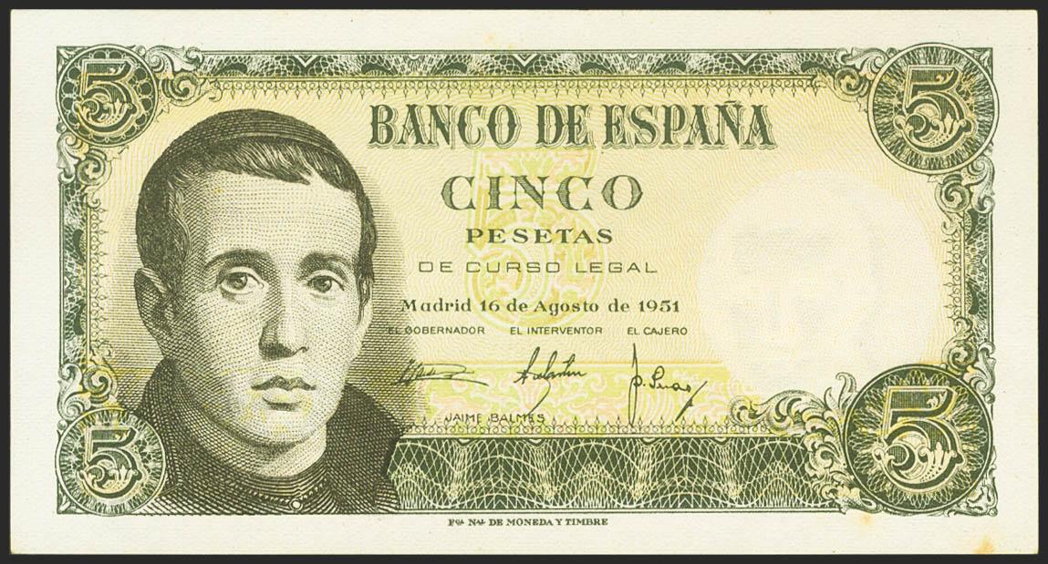5 pesetas. April 12, 1947. Series 1H. (Edifil 2021: 459a). original sizing Good Extremely Fine.