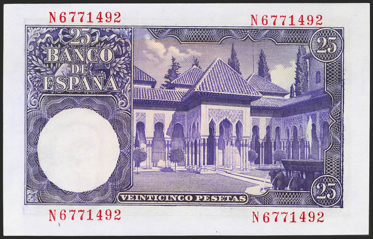 25 pesetas. July 22, 1954. Series N. (Edifil 2021: 467a). It retains all its original sizing. Uncirculated.
