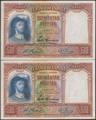 500 Pesetas. April 25, 1931. Correlative pair. No serie. (Edifil 2017: 361). It retains all the original finish, a small stain on the upper margin. Good Extremely Fine.