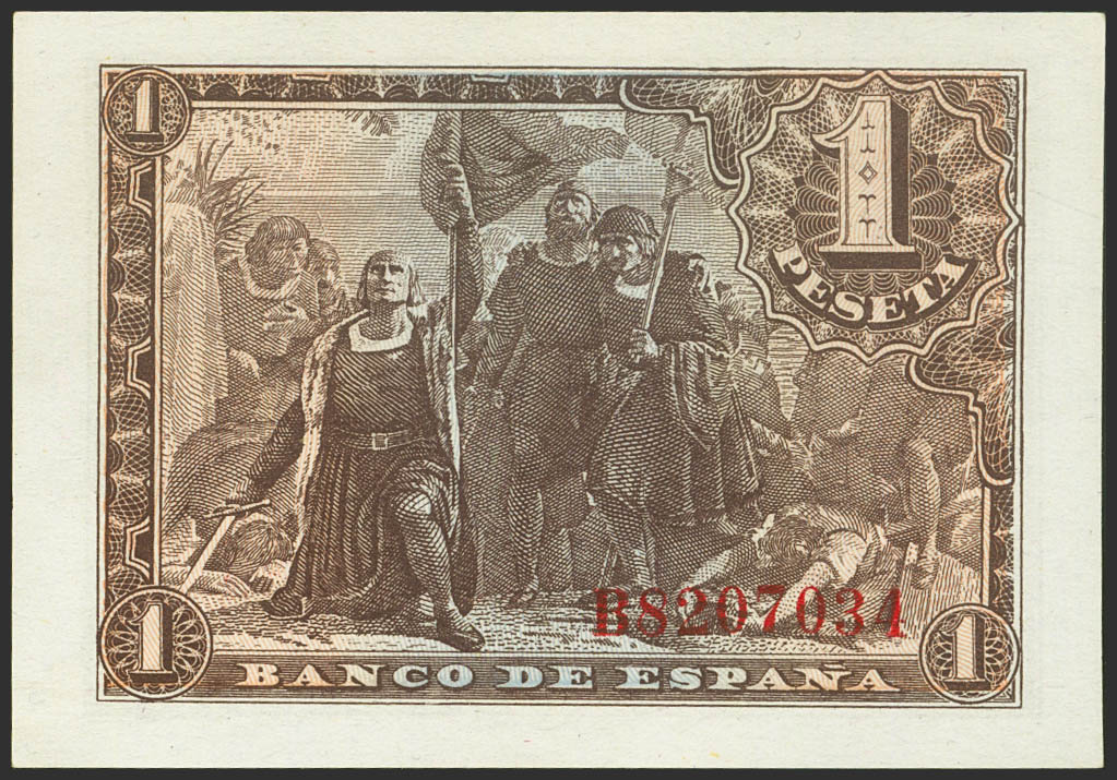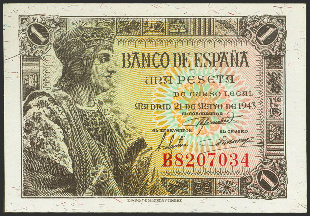1 Peseta. May 21, 1943. Series B. (Edifil 2021: 447a). Original sizing. Uncirculated.