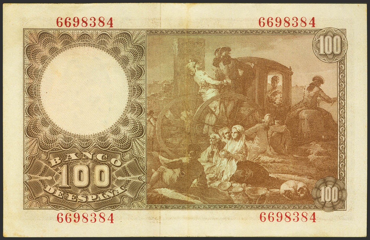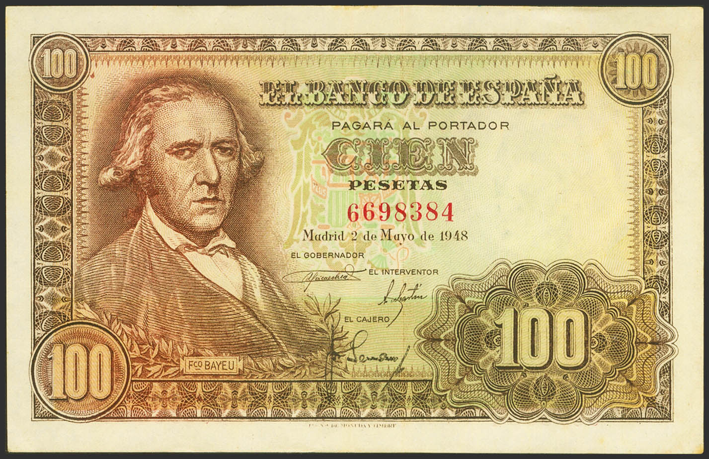 100 Pesetas. May 2, 1948. No series. (Edifil 2021: 456). It retains part of the original finish. Almost Extremely Fine.